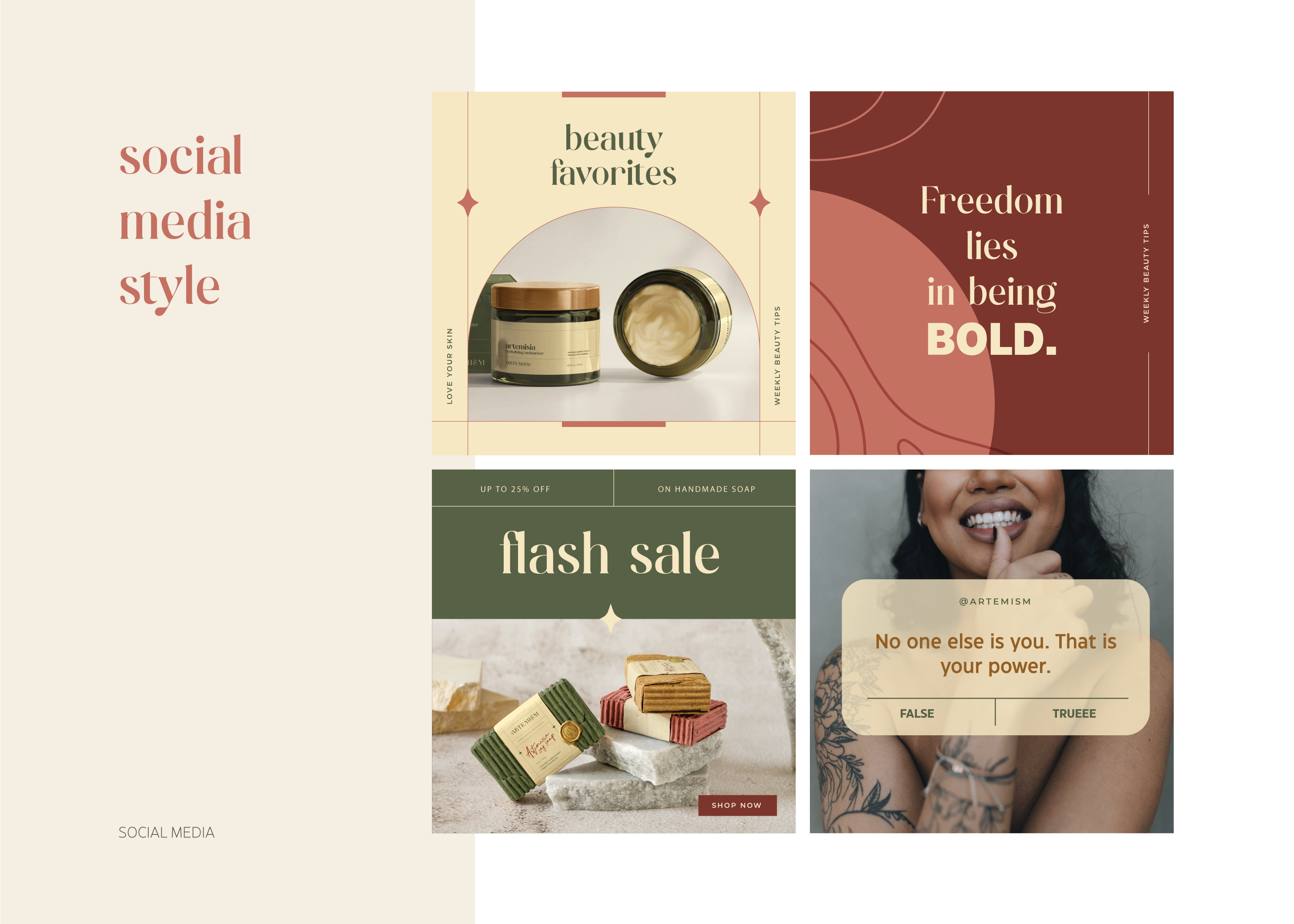 This inspired me to focus on using minimal ingredients from the nature to maximize the results that every empowering woman deserves while also circumventing environmental issue by offering products that do an exceptional job without plastic packaging as much as possible. From the communication messaging to the logo representation to the brand assets, all shall be consistently designed to symbolize the brand’s deep-rooted connection to nature.